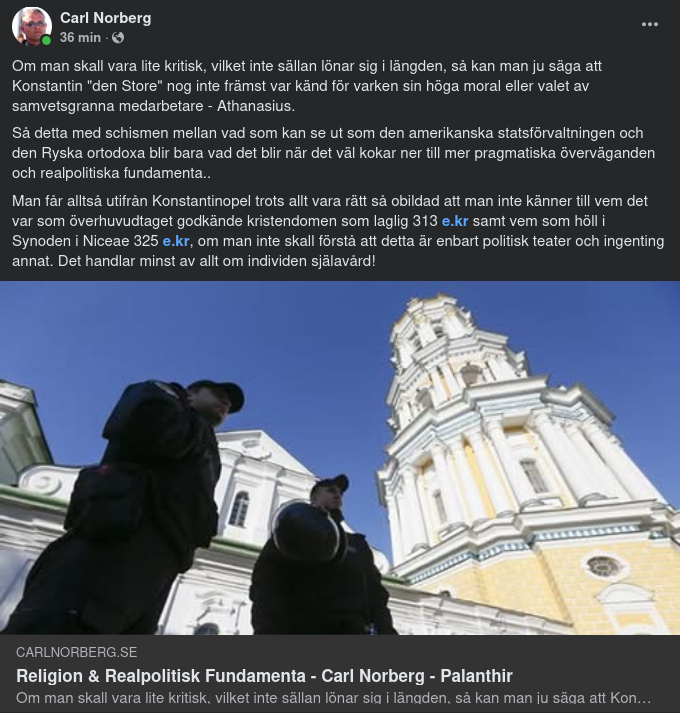 Arvet från kyrkomötet i Nicea År 2025 högtidlighålls världen över att det är 1700 år sedan det första ekumeniska kyrkomötet hölls i Nicea år 325 e.Kr. Kejsare Konstantin bjöd då in mellan 250-300 kristna biskopar från hela romerska riket för att diskutera och söka enas i en rad frågor rörande teologi och kyrklig ordning. Kejsare Konstantin hade år 313 infört religionsfrihet i Romarriket. Inom den unga kyrkan pågick dock en laddad teologisk dispyt om synen på Guds sons, Jesu Kristi relation till Gud Fadern. Konfliktens härd fanns i Alexandria, där den ena sidan företräddes av biskop Alexander och den andra av prästen Arius. Rent konkret handlade frågeställningen om huruvida Sonen är av liknande väsen (homoiousios) och underställd Fadern som den arianska sidan menade eller är av ett och samma väsen (homoousious) som Fadern, och därmed Gud i samma mening som Fadern, såsom biskop Alexanders sida hävdade. Kyrkomötet i Nicea, motsvarande Iznik i dagens Turkiet, slog fast att Fadern och Sonen är av samma väsen vilket också lade grunden för den Niceanska trosbekännelsen. Alla biskopar utom tre, däribland Arius, skrev under kyrkomötets trosbekännelse och Arius bannlystes och förvisades från Romarriket för en tid. Ytterligare ett viktigt beslut från Nicea reglerade det gemensamma firandet av Påsken: första söndagen efter första fullmånen efter vårdagjämningen. Fortsatta diskussioner i Konstantinopel… Men diskussionen och kontroversen runt den Heliga Treenigheten och trosbekännelsen fortsatte och 56 år senare, år 381, fick ett kyrkomöte i Konstantinopel, Istanbul i dagens Turkiet, lösa en del kvarvarande frågor. Kristendomen hade just blivit Romarrikets statsreligion och i Konstantinopel, som nu hade blivit det Östromerska rikets huvudstad, handlade det främst om hur Anden relaterade till den treenige Gudens övriga två personer. Konstantinopelmötet slog fast att den Helige Ande är den tredje personen i Treenigheten, och följaktligen av samma väsen som Fadern och Sonen. Kyrkomötet fullbordade trosbekännelsens lydelse i fråga om den Helige Ande. De två kyrkomötenas slutsatser sammanfattas i den niceansk-konstantinopelitanska trosbekännelsen (se nedan). … och i Efesos Över hundra år efter Niceamötet försökte ytterligare ett efterföljande kyrkomöte, nu i Efesos år 431, bringa klarhet i frågor sin rör konsekvenserna av bekännelsen av Jesus Kristus som sann Gud och sann människa. Den teologiska förgrundsfrågan var Marias, Jesu mors, roll i Guds sons människoblivande: Födde hon verkligen Gud och skulle då benämnas Gudaföderska (Theotokos), eller var det bara den mänskliga delen av Gud som hon födde? Kyrillos, patriarken av Alexandria, företrädde den förra synen, medan Nestorius, patriarken av Konstantinopel, förfäktade det senare. Efesosmötet stödde Kyrillos linje, det vill säga Maria skulle benämnas Gudaföderska. Nestorius bannlystes, avsattes och drevs i landsflykt. Den östassyriska kyrkotraditionen erkänner inte kyrkomötet i Efesos. … och så i Chalcedon De fortsatta teologiska förvecklingarna kring Guds Sons sanna gudomlighet och mänsklighet ledde fram till ett nytt kyrkomöte i Chalcedon, Kadiköy i dagens Turkiet, år 451. Huvudfrågan gällde huruvida denna Guds Sons gudamänsklighet bestod i ”en inkarnerad (människobliven) gudomlig natur, utan sammanblandning, förändring, delning eller åtskillnad” eller i ”två naturer, den gudomliga och den mänskliga i förening, utan sammanblandning, förändring, delning eller åtskillnad”. Alexandrias kyrka anförde den förra linjen (egentligen som en konsekvens av Efesosmötet), medan Rom och Konstantinopel drev den senare. Grovt förenklat kom det att handla om skilda semantiska uttryck och förståelse bland annat av begreppet ”natur”. Idag är den gängse uppfattningen, att de båda linjerna är teologiskt kompatibla. Detta till trots har kyrkorna i den orientaliska ortodoxa kyrkogemenskapen (såsom den koptiska, syrianska, armeniska, etiopiska) och i den bysantinska ortodoxa kyrkogemenskapen (såsom den grekiska, ryska, serbiska, rumänska, bulgariska) fortfarande en bruten nattvardsgemenskap till följd av schismen kring kyrkomötet i Chalcedon.https://carlnorberg.se/2023/01/18/doda-havsrullar-arius-merovinger/https://carlnorberg.se/2018/10/20/religion-realpolitisk-fundamenta/