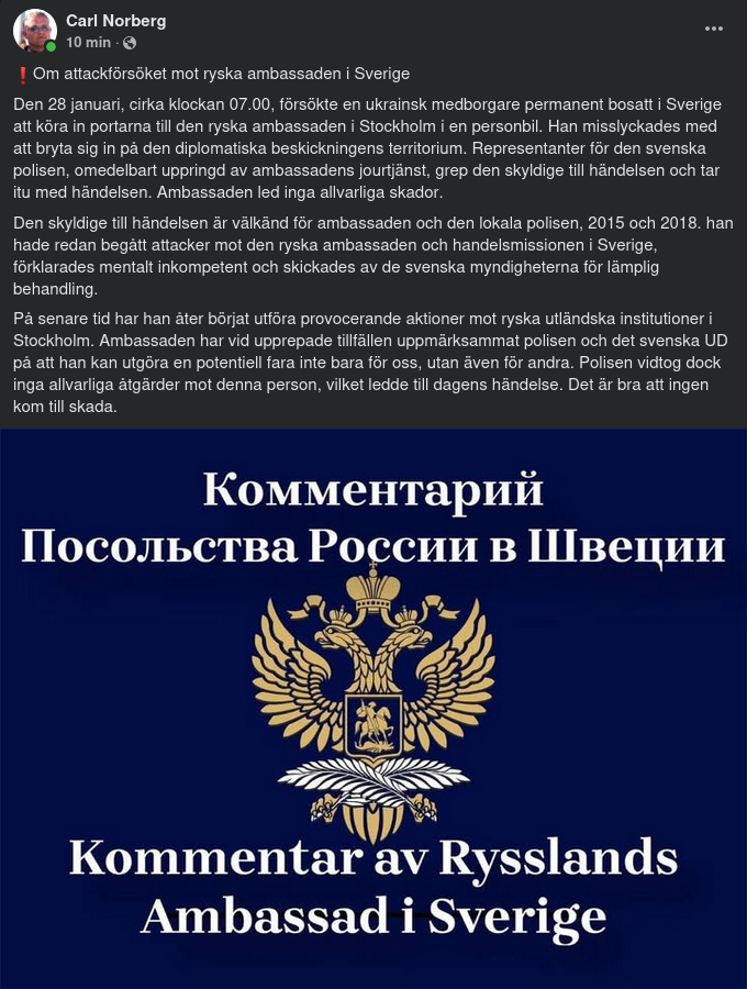 Polisinsats Utanför Ryska Ambassaden I Stockholm