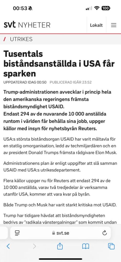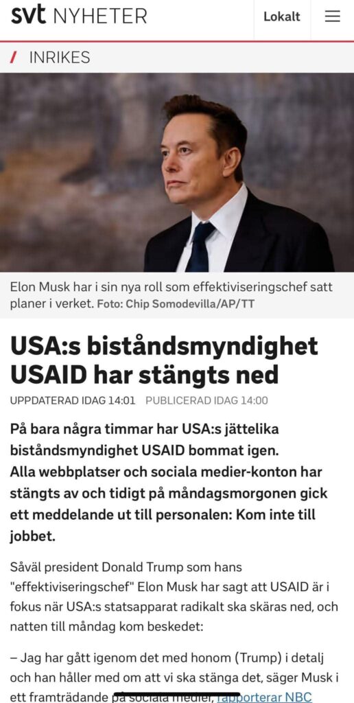 Hur svårt är det att minska ett svinn på 55 miljarder i statskassan varje år: (144 miljoner om dagen ! ) som i huvudsak går till korruption och i princip gör noll nytta för svenska skattebetalare? Stäng ner SIDA omgående. Lika snabbt och effektivt som nu görs i USA. Det skulle bli 100% mer till kärnverksamheten som staten skall och bör ägna sig åt. Just do it.