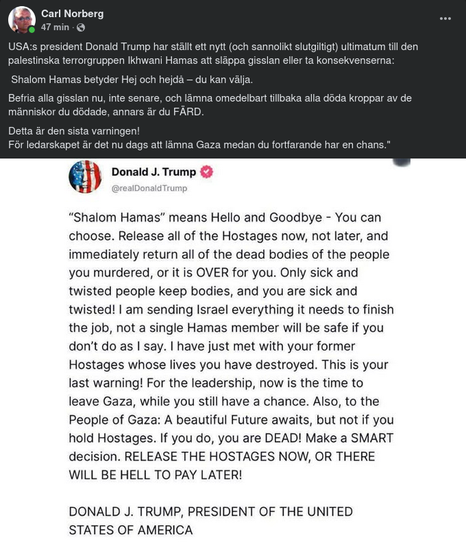 Trump Varskor Hamas