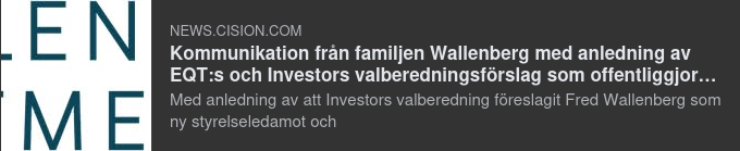 mån, mar 10, 2025 08:33 CET Med anledning av att Investors valberedning föreslagit Fred Wallenberg som ny styrelseledamot och att EQT:s valberedning föreslagit Jacob Wallenberg Jr som ny styrelseledamot, informerar vi samtidigt om ett antal andra förändringar av befattningar som kommer ske under året angående medlemmar i den sjätte generationen. Utgångspunkten för successionsarbetet är en önskan om att sjätte generationen ska ges förutsättningar att engagera sig i verksamheter som har nära anknytning till familjen. Successionsarbetet har pågått i mer än 10 år och vi har löpande och i ökande grad försökt vara öppna med drivkrafterna i detta arbete och utifrån vilka principer det bedrivits. Vårt arbete med såväl stiftelser, ägarbolag som familjen tar utgångspunkt i vår ambition att verka för Sveriges bästa på lång sikt, i linje med vad statuterna i den största och äldsta stiftelsen, Knut och Alice Wallenbergs Stiftelse, formulerar som “landsgagneligt”. Det är glädjande att vi under de senaste åren tagit tydliga steg framåt i vårt successionsarbete och att detta nu fortsätter under 2025. Premissen för vårt arbete är att stötta sjätte generationen i deras professionella utveckling i deras dagliga arbeten och karriärer. Sjätte generationen omfattar ett 30-tal individer och merparten av dem har uttryckt en vilja att bidra till familjens arbete i någon form. Åldersspannet är stort vilket betyder att de förändringar som nu sker är en del av en löpande process, och inte ett beslut kring vilka som över tid kommer kunna inneha positioner av betydelse för familjen. Ett antal familjemedlemmar är alltjämt under 25 år, och antalet individer i den sjunde generationen växer. Vi är tacksamma över att ett antal individer under året ges möjlighet att bidra och utvecklas på nya positioner under 2025. Nedan framgår de förändringar som föreslås under 2025: Stéphanie Gandet – föreslagen styrelseledamot i Knut och Alice Wallenbergs Stiftelse Siri Sachs – föreslagen styrelseledamot i Wallenberg Investments AB Tessa Pilkington – föreslagen styrelseledamot i Nineteen Private Capital AB Fred Wallenberg – föreslagen styrelseledamot i Investor AB Jacob Wallenberg Jr – föreslagen styrelseledamot i EQT AB Elsa Wallenberg Esser – kommer att börja arbeta på Wallenbergstiftelserna Därutöver är sedan tidigare ett 10-tal andra medlemmar i den sjätte generation involverade i verksamheter knutna till familjen som adjungerade i både bolags- och stiftelsestyrelser. Dessutom har flera av dem karriärer i innehav med anknytning till Wallenbergstiftelserna och Wallenberg Investments, både i Sverige och internationellt. “Vi är tacksamma över att många ur sjätte generationen vill engagera sig i verksamheter knutna till familjen – inom såväl affären, stiftelserna som familjearbetet. Det är ett långsiktigt arbete där vi ser fram emot att fler ges möjlighet att lära, utvecklas och bidra. Stiftelserna, som har en central plats i vårt ekosystem, och dess förmåga att finansiera svensk grundforskning och utbildning vid svenska lärosäten, möjliggörs av utvecklingen av innehaven där vi tar ett förvaltningsansvar. Vi gläds över att deras engagemang för dessa verksamheter fortsätter att växa, liksom i arbetet med att utveckla vårt nätverk och värdebas”, kommenterar Jacob, Marcus och Peter Wallenberg. För frågor från media: Laura Safir, Kommunikationschef Wallenberg Investments E-mail: laura.safir@wallenberginvestments.com Telefon: 073-515 22 61 Om Wallenberg Investments: Wallenberg Investments AB administrerar Wallenbergstiftelserna samt förvaltar och utvecklar deras tillgångar. Wallenbergstiftelsernas största tillgångar är det noterade delägda industriella holdingbolaget Investor respektive de helägda ägarbolagen Wallenberg Investments, FAM, Navigare Ventures samt Nineteen Private Capital. De största Wallenbergstiftelserna är Knut och Alice Wallenbergs Stiftelse, Marianne och Marcus Wallenbergs Stiftelse och Stiftelsen Marcus och Amalia Wallenbergs Minnesfond. För mer information, besök: www.wallenberginvestments.comhttps://www.svd.se/a/B0BVL9/wallenbergfamiljen-bjod-pa-en-liten-skrall