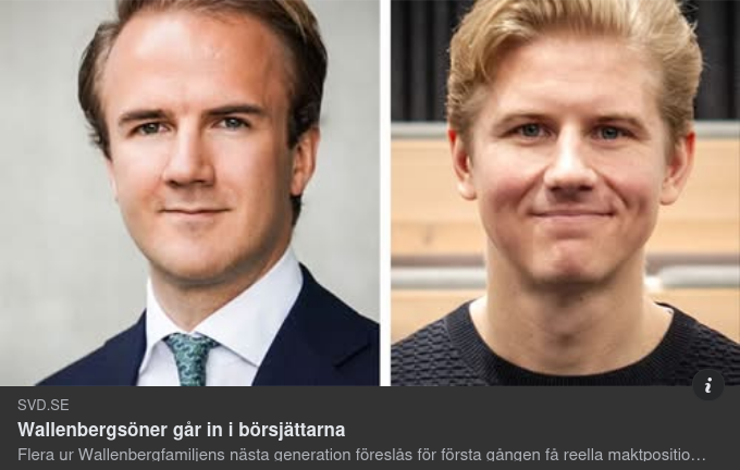 Att något skulle hända och att vi skulle få se en hel del mer av Wallenbergfamiljens sjätte generation – det stod klart redan i höstas. Detta när familjens femte representanter i en artikelserie i SvD berättade om nästa steg i successionen i Sveriges största industrisfär. Men att det skulle hända redan nu, och i två så stora bolag som Investor och EQT – det är en nyhet av format. Valberedningarna i de två företagen släppte nyheterna simultant på måndagsmorgonen: • Fred Wallenberg, född 1990 och son till Marcus Wallenberg, föreslås ta plats i styrelsen för investmentbolaget Investor. • Jacob Wallenberg Jr, född 1992 och son till Jacob Wallenberg, föreslås till styrelsen för riskkapitaljätten EQT. Parallellt kommunicerade ett av familjens onoterade förvaltningsbolag nya roller för fyra andra ur sjätte generationen. Den största nyheten där är att Stéphanie Gandet, född 1985 och dotter till Jacob Wallenbergs syster Andrea Gandet, föreslås till styrelsen för Knut- och Alice Wallenbergs stiftelse. Styrelseförändringar på den här nivån är nyheter i sig – oavsett vem som tar plats. Investor är Stockholmsbörsens största bolag med överlägset flest aktieägare, och själva navet i Wallenbergimperiet. EQT är numera fyra på listan över störst marknadsvärde. Att Wallenbergfamiljen fortsätter att axla ägaransvaret i så stora börsbolag är ingenting annat än svensk ekonomihistoria. Att det nu blir just Fred Wallenberg som föreslås att stiga in i Investor, är i sammanhanget inte särskilt överraskande. Han är en av dem som haft mest framträdande operativa roller i företagsgruppen och har också en examen från ett amerikanskt universitet, likt ledarna i femte generationen. Fred Wallenberg var också en av de fem ur sjätte generationen som uttalade sig i SvDs artikelserie i höstas. Jacob Wallenberg Junior har däremot varit mer av en dark horse i successionsdiskussionen. Han jobbar på en startup i New York, och hade så sent som i höstas ingen formell roll i familjeimperiet. Däremot har han också utbildning från USA-universitet och har praktiserat på just EQT. Att omvärldens fokus hamnar på de två sönerna som föreslås till börsstyrelserna är naturligt med tanke på den offentlighet en sådan roll medför. Därför ser det vid en första anblick utifrån ut som att de mest upphöjda i den sjätte generationen Wallenbergare fortsätter vara män, liksom de tre i den nuvarande femte. Detta trots att Marcus Wallenberg sa till SvD i höstas att ”vad gäller könsfördelning tror jag inte det finns någon verksamhet där vi inte prioriterar att försöka få en balans. Så även i familjen”. Men då underskattar man nog de andra nya rollerna för den sjätte generationen som kommunicerades på måndagen. Stéphanie Gandet kommer med sin styrelseplats i Knut- och Alice Wallenbergs stiftelse vara med och bestämma över Sveriges största privata förmögenhetsmassa och Sveriges största privata forskningsfinansiär. En annan nyhet på måndagen var också att Siri Sachs, född 1986 och styvdotter till Marcus Wallenberg, föreslås till styrelsen för det onoterade Wallenberg Investments. Det är härifrån ”de långsiktiga och strategiska besluten” fattas om hur stiftelsernas kapital förvaltas, även det en ansenlig maktposition. Därutöver föreslås Elsa Wallenberg Esser och Tessa Pilkington få nya ”hårda” roller i miljön runt stiftelserna. Exakt hur makten i nästa generation kommer fördelas och på vem den hamnar, lär dock visa sig tydligare framöver, och bli något för oss börskremlologer att sätta tänderna i. Familjen och bolagen är noga med ordet ”föreslås” i kommunikationen på måndagen. De flesta av rollerna är förtroendeposter där familjen är beroende av andra ägare och andra personer för att de unga verkligen ska släppas in. Men med tanke på det allmänt positiva inställning till familjen som de största fond- och pensionsjättarna uppgav i den enkät som SvD gjorde i höstas, lär invalen mer eller mindre vara en formalitet.Mmmmm.