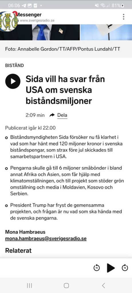 SIDA Kräver Tillbaka 120 Miljoner Från USA