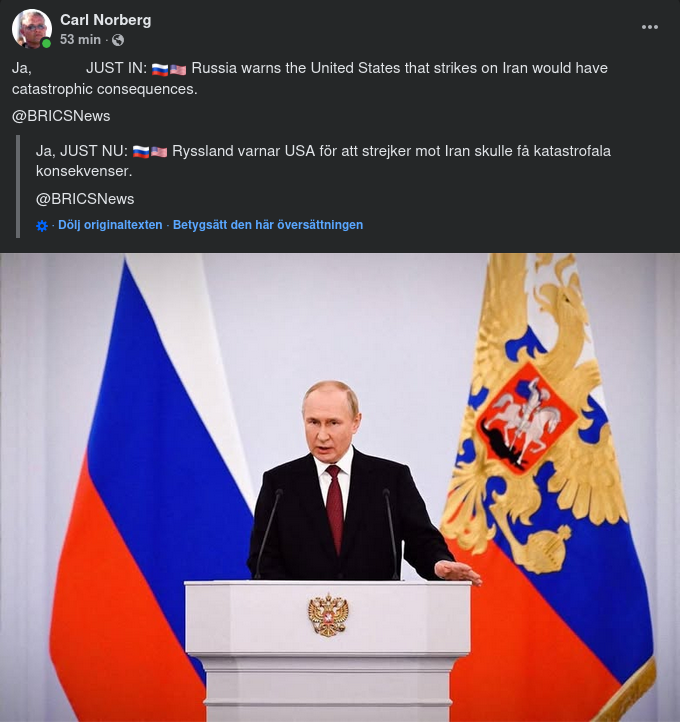 Ryssland: Katastrofala Följder Om USA Attackerar Iran