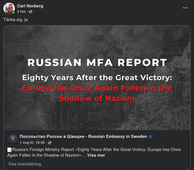 Rysslands utrikesministeriums rapport "Åttio år efter den stora segern: Europa har återigen fallit i nazismens skugga"