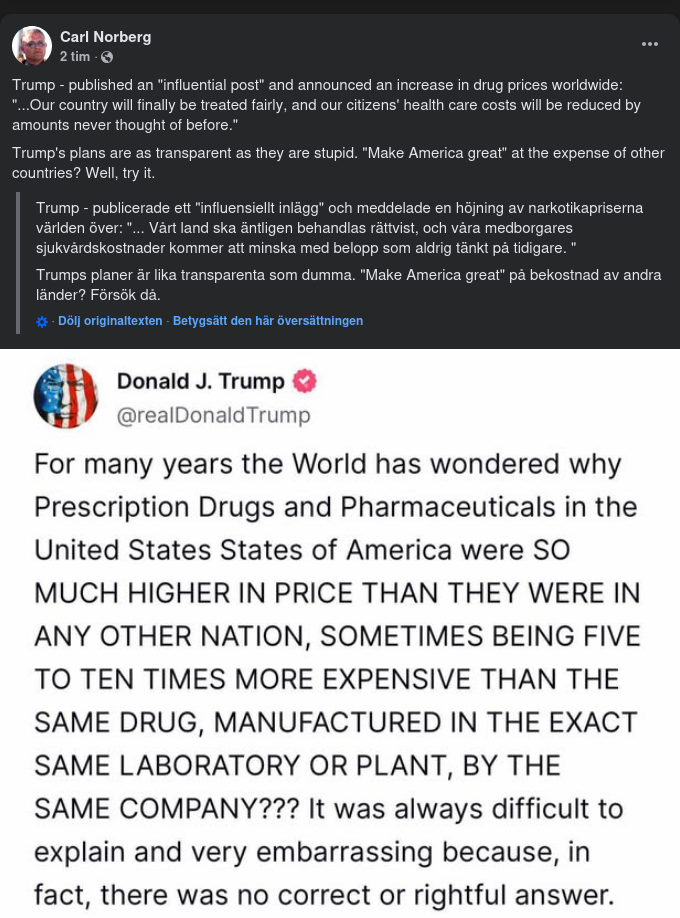 Trumps Nästa Inlägg...Läkemedelspriser