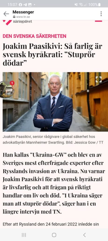 "och civilområden, för civil beredskap och samverkan under kris. Men dessa geografiska områden överlappar inte alltid och innebär exempelvis att en kommun kan höra till en militärregion – men till ett helt annat civilområde. – Det är sådana saker som är förbryllande för en lekman. Nu vet jag att det samverkar väldigt mycket, men det hade varit enklare om vi hade gjort rätt från början. Det som är centralt med Rysslands krig mot Ukraina är att det satte i gång de här krafterna som vi nu inte vet vart de är på väg, menar han. – Det centrala i hela kärnan i det är att den värld som vi kände i början av 2022 aldrig kommer tillbaka. – Ja, nu får de ju som de vill ryssarna, när de pratar om en multipolär värld. De kommer att minska i betydelse. Och att USA väljer att självmant backa och isolera sig. Ja, vad händer då? Då blir det större utrymme åt Kina. ”Lite tråkigt att vi i Europa verkar vara bäst på att hitta problem för oss själva.” Nu måste Europa bli en maktfaktor att räkna med, menar Joakim Paasikivi. Inom EU bor 448 miljoner invånare och det finns en högteknologisk kompetens och militär styrka. – Ryssland går inte bra, Kinas ekonomi är på väg utåt och USA håller på att frånträda sig ansvaret. Det skapar ett utrymme för oss bara vi vill. Och då är det lite tråkigt att vi i Europa verkar vara bäst på att hitta problem för oss själva. Nyligen skrev USA och Ukraina på det omtalade mineralavtalet, vilket innebär att USA får tillgång till naturresurser som aluminium, grafit, olja och naturgas i Ukraina. – Det var oerhört viktigt för det ger USA en anledning att förhålla sig välvilligt till Ukraina. Och det såg vi också i och med att Ukraina senare samma dag fick köpa vapen av USA. Bara några dagar tidigare avvisade Donald Trump en köpförfrågan från Ukraina om tio amerikanska luftvärnssystem och sa att: ”Man startar inte ett krig mot någon som är 20 gånger större än en själv och sedan hoppas att folk ska ge en några robotar”. – Men nu kan man från amerikansk sida konstatera att ’We struck a deal. Kolla vad bra vi är’. Då går det att ha både ett kommersiellt utbyte och ett militärt utbyte som inte kostar riktiga pengar. Det vill säga underrättelsetjänst, statsstöd och allt annat som är vitalt för Europas säkerhet. Det är inte så att Ukraina skulle kollapsa utan, men det är avsevärt bättre än alternativet. ”Trumps väljarbas är djupt ointresserad av oss i Europa, utom som möjligtvis motståndare eller hackkycklingar.” Det här är ett tydligt tecken på att de globala spelreglerna just nu ändras dag för dag, minut för minut. – För tio dagar sedan var affärsförbindelser med Ryssland viktigare än Ukraina. Sen kom mineralavtalet och det ändrade allt. Den här ryckigheten från USA:s sida skapar en stor osäkerhet. I kombination med USA:s tullar så blir handelsavtal som MERCOSUR, förhandlingarna med Indien ännu viktigare. Samtidigt ökar betydelsen av Fjärran Östern när handeln med USA är osäker och ryckig. Mycket av Donald Trumps agerande kan bero på att den amerikanska presidenten vill ”pleasa” den inhemska opinionen i USA. – Trump håller inte på med utrikespolitik. Han håller på med inrikespolitik som får globala konsekvenser. Och det är vi som ser de globala konsekvenserna. Hans väljarbas är djupt ointresserad av oss i Europa, utom som möjligtvis motståndare eller hackkycklingar. Och då blir det lättare att förstå varför Trump fattar de beslut han gör. – Han har i intervjuer sagt att allt som går bra är hans förtjänst och allt som går dåligt är på grund av den tidigare presidenten Joe Biden. Han har en välutvecklad selektiv syn på verkligheten."
