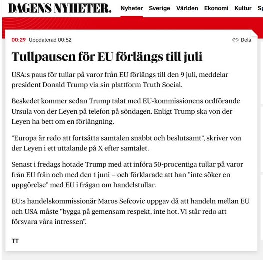 Förlängd Tariffpaus För EU