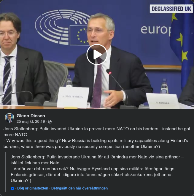 Thabo Motsieloa; "Genialt Herr Stoltenberg vi fick Ryssland att göra bort sig genom utvidgningen av NATO... eller hur?