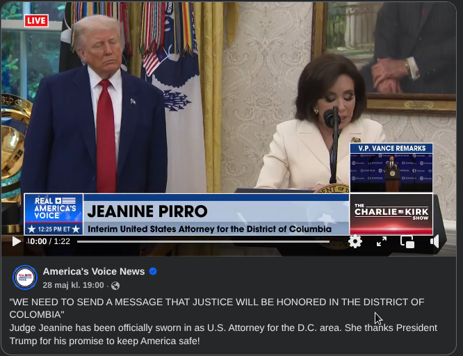 Judge Jeanine has been officially sworn in as U.S. Attorney for the D.C. area. She thanks President Trump for his promise to keep America safe!