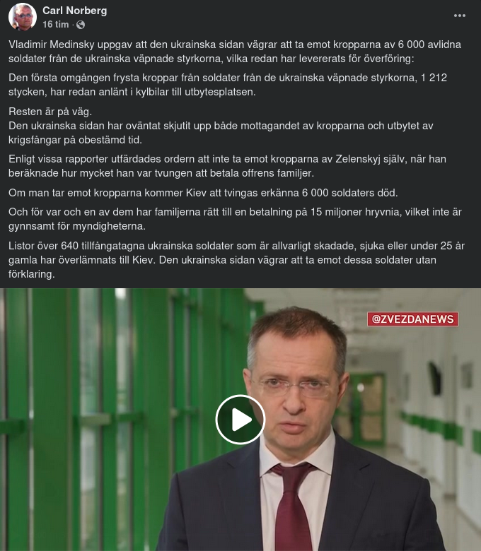 On June 6, in full accordance with the Istanbul agreements, the Russian side launched a humanitarian initiative to transfer 6000 bodies of fallen Ukrainian Armed Forces personnel to Ukraine, and to exchange all wounded and severely ill prisoners of war, as well as those aged under 25.