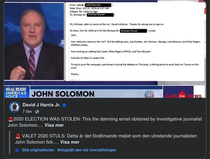 VALET 2020 STULS: Detta är det fördömande mejlet som den utredande journalisten John Solomon fick.
