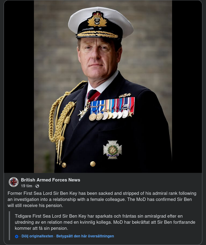 Sparkad & Degraderad Från Engelska Flottan Med Bibehållen Pension