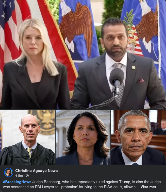 #BreakingNews Judge Boesberg, who has repeatedly ruled against Trump, is also the Judge who sentenced an FBI Lawyer to 'probation' for lying to the FISA court, allowing Obama officials to continue to spy on Trump, according to Tulsi Gabbard #DC "This is what we are talking about when we refer to the Deep state. It is very far reaching" "This is why it's so important we continue with indictments and prosecutions - and this will be up to Attorney General Pam Bondi & FBI Director Kash Patel" Boesberg Involvement: Obama's FBI got FISA warrants to spy on Trump's campaign in 2016 - at the direction of Barack Obama - based on fake, manufactured intelligence - Gabbard says. #Obama Those FISA warrants were renewed three times (9 months) - on a spy campaign that nearly ruined the life of Carter Page - a former Trump campaign advisor. In Gabbards words the spy campaign was part of a years-long plan to overthrow Trump - which equals Treason, seditious conspiracy to overthrow the U.S. government Kevin Clinesmith, the former FBI lawyer assigned to provide legal support for the "Crossfire Hurricane" investigation (Russia Collusion Hoax based off fake intelligence) - lied on FISA renewal application emails - falsifying information about Page's relationship with the CIA - so the Obama administration could continue spying on Trump via Carter Page He pleaded guilty to making a false statement in 2020, and was sentenced to 'probation' by Judge Boesberg Boasberg defended Clinesmith and painted him out to be the victim in his ruling, "Anybody who has watched what Mr. Clinesmith has suffered is not someone who will readily act in that fashion." "The destruction of Mr. Clinesmith’s career — and being vilified in a media hurricane — has already provided significant punishment" For perspective: Lying to Congress: Up to 5 years in prison and fines. Lying to a Judge (Perjury in Federal Court): Up to 5 years in prison and fines up to $250,000 Lying to the FBI: Up to 5 years in prison and fines Lying to Local Police: Up to 5 years if tried as a felony Judge Boasberg, based in D.C., has issued several rulings that have gone against former President Donald Trump or his administration's policies: 2019 - Boasberg blocked work requirements for Medicaid recipients in Arkansas and Kentucky - directly overturning a key Trump administration initiative 2023- : Boasberg ordered former Vice President Mike Pence to testify before a grand jury, rejecting claims of executive privilege, making Pence give 'evidence' damaging to Trump in the January 6-related investigation. 2025- Boasberg stopped the Trump administration's deportation of Venezuelan nationals under the Alien Enemies Act of 1798 2025 - Boasberg ordered a stop. to deportation flights to El Salvador 2025 -Boasberg issued a sweeping preliminary injunction against Trump's use of the Alien Enemies Act for mass deportations 2025 Boasberg ordered Trump officials to preserve Signal app messages related to sensitive operations - for his review #BREAKING