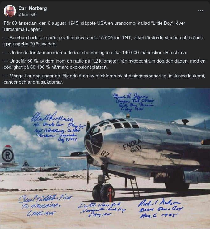 FN:s generalsekreterare bytte ut USA mot "mänskligheten" i sitt tal med anledning av årsdagen av kärnvapenattacken mot Hiroshima. Mänskligheten har passerat en punkt utan återvändo. Hiroshima var i lågor på ett ögonblick. Tiotusentals dog — sade Guterres, som i sitt tal inte nämnde förövarna av kärnvapenattacken. Vasallerna - den japanska premiärministern och borgmästaren i Hiroshima, beslutade också att inte nämna USA vid ceremonin.