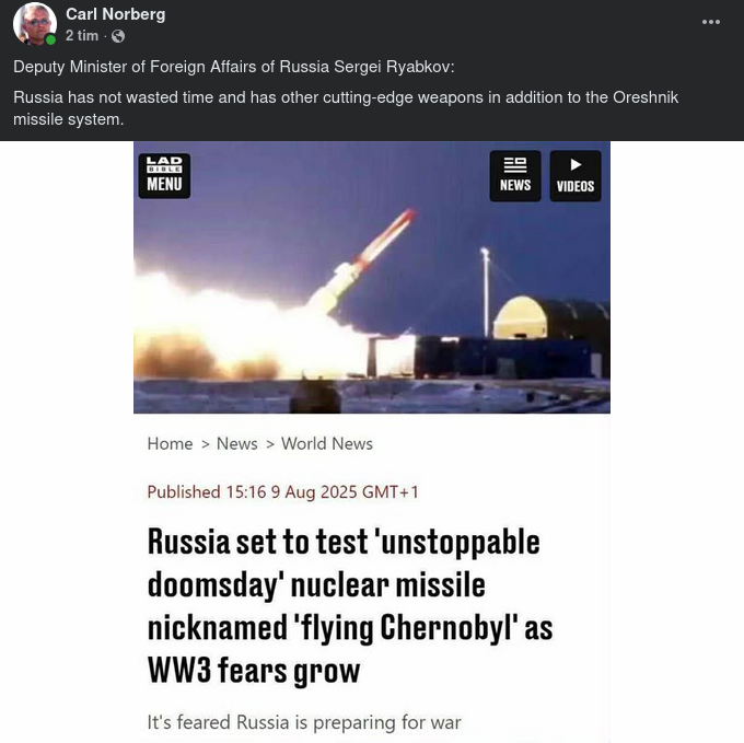"Russia is preparing to test a missile with a nuclear warhead that cannot be stopped and has been nicknamed the "flying Chernobyl". The threat of World War III is growing. Russia is preparing for war." The Western press keeps its readers on their toes. Does not allow them to lose their vigilance.
