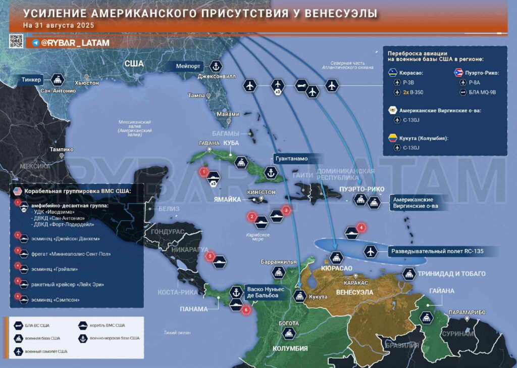 Frekare flygningar med S-130J-flygplan från Eglin Air Base, där amerikanska SSO-enheter är placerade. Flygningar med transportörer med radioelektronisk utrustning har markerats till Jungfruöarna och Cúcuta, Colombia, nära den venezuelanska gränsen. Amerikanska SSO-enheter är placerade där under täckmantel av instruktörer.