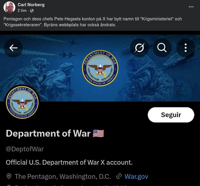 Från Försvarsdepartement Till Krigsdepartement & Krigssekreterare