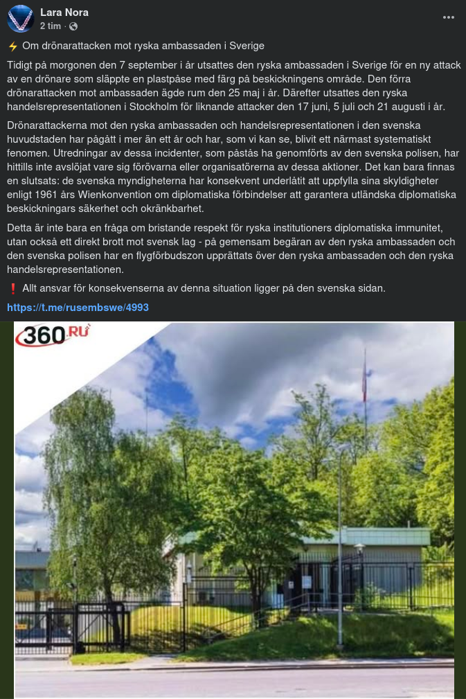 Ny Drönarattack Mot Ryska Ambassaden I Sverige