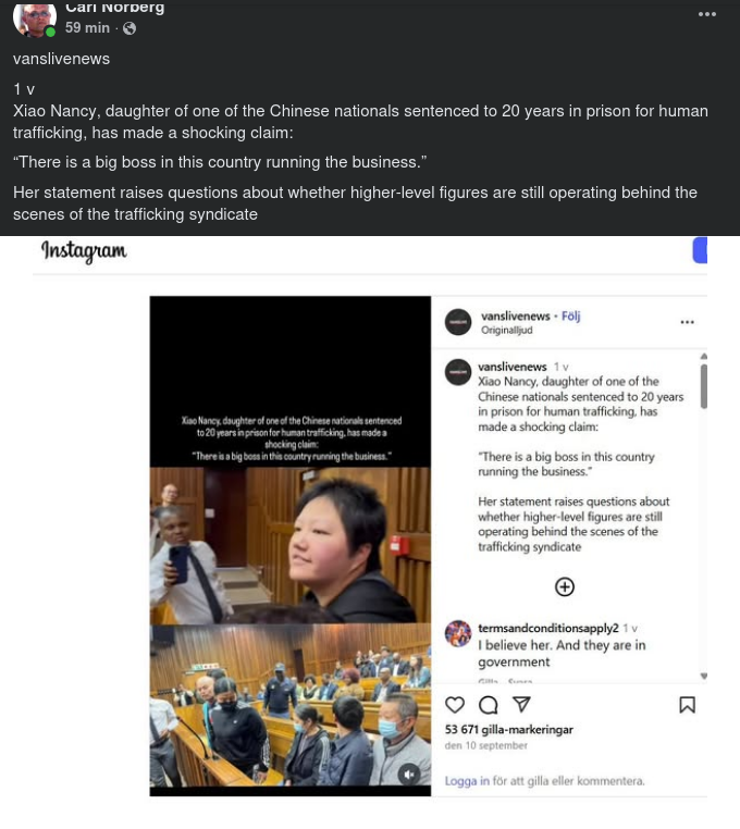 Bidra genom att Swisha till 076-118 25 68, mottagare är Caroline Norberg.