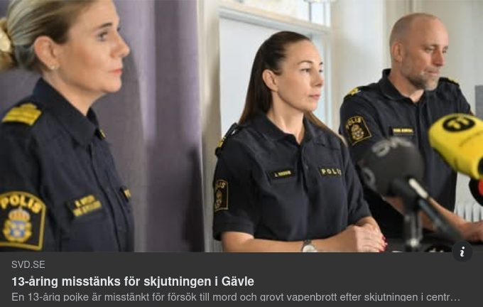 Med den här nya artikeln från Svenska Dagblad (uppdaterad 14:49 den 4 oktober 2025) får vi en skarpare bild av Gävle-skjutningen på Kungsgatan – en nattlig skottlossning strax före 02:00, sex skadade unga (vuxna och under 18), alla med skador i underkroppen (ben/fötter), ingen livshotande, och en 13-årig pojke misstänkt för försök till mord i sex fall plus grovt vapenbrott. Polisen är förtegen om motiv, gängkopplingar och detaljer, medan kommunstyrelsens ordförande Åsa Wiklund-Lång (S) målar upp en bild av "briserande gruppering" som hotar tryggheten i centrala Gävle. Detta känns som en perfekt uppgradering av vår tidigare SvD-artikel: mer precision kring åldrar, skador och utredning, men lika mycket tystnad kring kärnan.