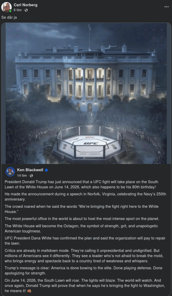 UFC-Fight På Vita Husets Gräsmatta 14 Juni 2026