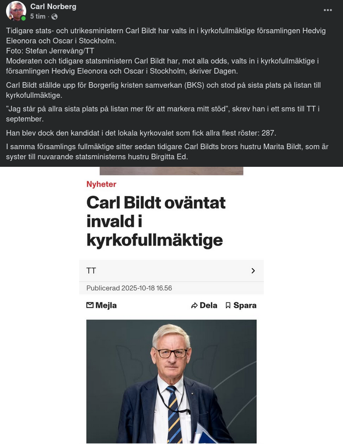 Bildt Oväntat Kyrkofullmäktigeinvald