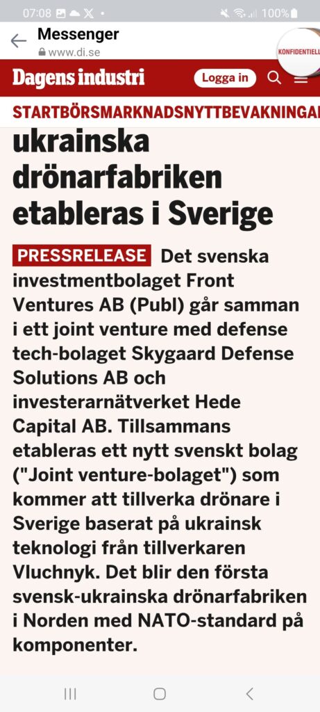 Ukrainsk Drönarfabrik Etableras I Sverige