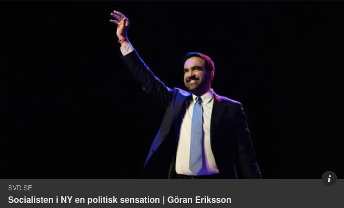 I New York vinner socialisten Zohran Mamdani lätt, men det gör också mer högerlutande demokrater i Virginia och New Jersey. Kanske får alla draghjälp av presidenten i Vita huset – tisdagens förlorare är Donald Trump. Göran Eriksson Publicerad 05:58 Följ skribent Kopiera länk Mail X Facebook NEW YORK. Det är en strålande vacker novemberdag, och Central Park är målad i höstfärger, när kapitalismens huvudstad faller och New York får ett socialistiskt styre. Zohran Mamdanis motståndare hade i alla fall tur med vädret. ”Mamdani kommer att döda den här stan” fräser en äldre man med rullator utanför en vallokal på Upper West Side. Han rullar snabbt vidare och vill inte fräsa mer än att han röstade på Andrew Cuomo. Svidande nederlag för Wall Street När Mamdanis seger var klar skrev X-kontot Wallstreetmav att ”de kommande fyra åren kommer det att bli oerhört underhållande att se detta vilda socialistiska/kommunistiska experiment i världens tidigare finanshuvudstad.” Borgmästarvalet blev ett svidande nederlag för de på Wall Street som investerat både tid och framför allt pengar på att stoppa socialismen. Men i höstsolen utanför en vallokal i Astoria i Queens – där Zohran Mamdani bor – är många förstås brinnande optimister och Zohranister. Sarah Shahata, är tatuerare och kallar sig socialist: – Jag vill ha jämlikhet, rättvisa för massorna, och för låginkomsttagare. Varför har vi miljardärer? Det finns ingen anledning till att vi ska ha miljardärer. Ekonomiskt välstånd borde fördelas i samhället, för det allmänna bästa. Sarah Shahata röstade på Mamdani. Sarah Shahata röstade på Mamdani. Foto: Göran Eriksson Carolyn McLaurin har en examen en i statsvetenskap från New York University och tvekade aldrig om vem hon skulle välja. Hon säger att hon hatar Andrew Cuomo, som ställde upp som oberoende, och Curtis Sliwa, Republikanernas kandidat. – Men jag gillar verkligen Mamdanis politik. Jag är själv socialist och håller med om hans program. Tisdagens tre tyngsta val har beskrivits som ett sorts storskaligt politiskt experiment för Demokraterna. Efter det förkrossande nederlaget i presidentvalet har partiet famlat efter en strategi som ska fungera för att ta tillbaka makten i representanthuset nästa år, och i Vita huset 2028. Måste man ta steg till vänster för att kunna vinna mot Trumps Magarörelse? Eller till höger, genom att och sluta driva frågor som transrättigheter och annat som Republikanerna kallar ”woke”? Eller räcker kanske väljarnas missnöje med Trump för att Demokraterna ska bli valbara igen? Partifalangerna har förberett sig för strid med tisdagens valresultat som vapen. Nu vann vänstermannen Mamdani bekvämt i New York, men det gjorde också de mer traditionella demokraterna i de två guvernörsvalen, Abigail Spanberger i Virginia och Mikei Sherill i New Jersey. Seger – men utan tydlig riktning Tre solklara segrar – det enda Demokraterna kan klaga på är att väl valkvällen inte ens blev spännande. Det är förstås en triumf för det svårt sargade Demokratiska partiet, men pekar inte ut någon tydlig riktning framåt. Förmodligen är det ändå en lättnad för de mer traditionella demokraterna – deras motståndare i partivänstern skulle ha haft en mycket starkare position om New York hade varit det enda framgångsexemplet. Demokraterna vann också en folkomröstning i Kalifornen, som nu kommer att rita om valkartan för att ge partiet fler platser i kongressen – ett svar på vad republikanerna har gjort i Texas. President Trump hade – med varierande entusiasm – gett sitt stöd till Demokraternas motståndare i New York, Virginia och New Jersey. Alla förlorade, och därmed också Donald Trump. Segern i borgmästarvalet i New York är en politisk sensation. Zohran Mahmdani övervann till alla invändningar – han var för ung, han var för vänster, han var muslim, han var för kritisk mot israel och för okritisk mot Hamas, han var för oerfaren och han är inte arbetarklass: pappan är en framgångsrik professor och mamman är filmskapare. Inte ens Mamdanis tidigare försök som rappare under namnet Mr Cardamom – Herr Kardemumma – fick det trendmedvetna unga New York att vända sig från honom. Kodordet var ”affordability” – och löftet att sänka kostnaderna för att leva i New York. Men supportrarna är nu tveksamma till hur mycket han verkligen kommer att kunna av sitt vänsterlutande program – som de höjda skatterna som han själv inte har makt över. – Förmodligen inte särskilt mycket. Men jag gillar hans avsikter, säger Carolyn McLaurin. Jean Lithgow, 86 år. Jean Lithgow, 86 år. Foto: Göran Eriksson. 86-åriga Jean Lithgow röstade på Mahmdani på Upper East side, och säger att hon har varit demokratisk socialist sedan hon var 11 år, och äntligen fick en kandidat att rösta på. – Jag tror att vissa av hans förslag kommer att vara svåra att genomföra, men jag bryr mig inte. Vem som helst som försöker något nytt är bra. – Han kommer att flytta politiken väldigt lite till vänster. Borgmästare i New York är ett omöjligt jobb, säger Chris Krohn som är från Kalifornien men kampanjar i New York. Sarah Shahata tror att supportrarna kommer att ändra inställning till Mamdnai efter valsegern. – När han har vunnit, kommer vi att gå från att älska honom till att hålla honom ansvarig för vad han inte genomför. Men hur går det för Wall Street? Ingen vet, men det kunde alltid vara värre. 1929 ställde den svenskfödda socialisten Olive M. Johnson– född Olivin Malmberg i Lund – upp i borgmästarvalet. Hon fick bara 0,4 procent av rösterna. Det var två veckor efter den stora börskraschen.