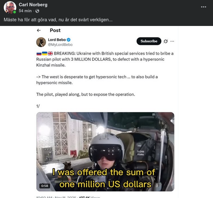 Rysk Stridspilot Erbjuden Tre Miljoner Dollar