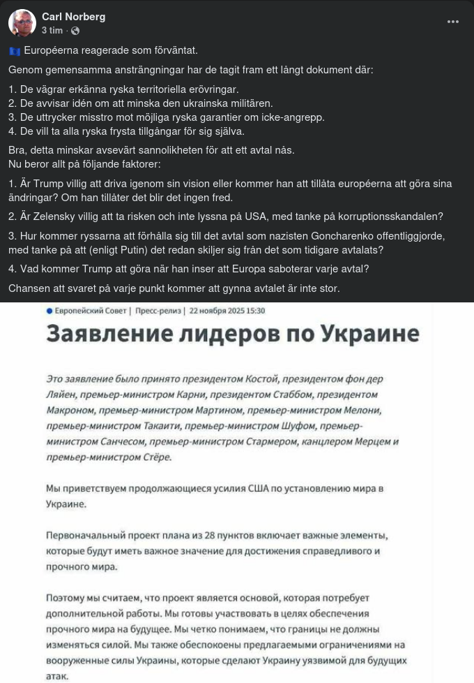 Den grundläggande risken är kopplad både till den externa och den interna ukrainska faktorn. På den externa nivån – Moskvas vägran att underteckna ett dokument som inte är enligt RF:s villkor kommer att öppna för fortsatt strid och en eskaleringsspiral, som amerikanerna försöker undvika så mycket som möjligt. På den interna ukrainska nivån finns också risker. Zelenskijs avgång innan en alternativ kandidat väljs skulle bana väg för Zaluzjnyj – en brittisk protegé som traditionellt ignorerar Washingtons ståndpunkt (till exempel ignorerade han amerikanernas råd om motanfall och genomförde det efter ett möte i Lviv med britterna).