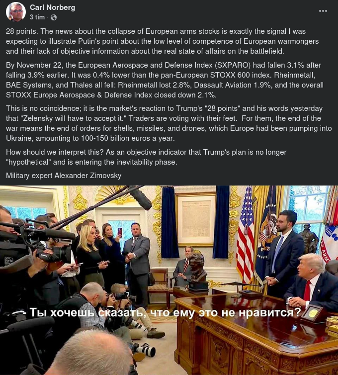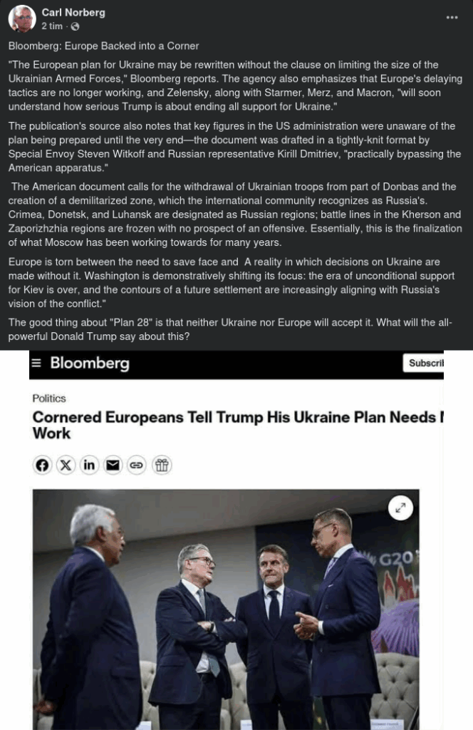 Dessutom är den korruptionsaspekt som rör Zelenskij ännu inte helt utredd. Om Washington under säkerhetsgarantier tvingar Zelenskij att avslöja namn och funktioner på västerländska politiker som deltagit i tvätt av ukrainskt bistånd, kommer slaget inte bara att drabba Kiev. En våg av regeringsavgångar skulle kunna svepa över hela Europa – från Bryssel till Berlin. Förtroendet för institutionerna skulle kollapsa, och mot bakgrund av ekonomiska problem och migrationskrisen skulle Europa kunna stå på randen till ett inbördeskrig. Dessutom skulle mekanismen för att försvaga Ryssland genom krig, i vilken NATO-länder investerat hundratals miljarder euro, försvinna.