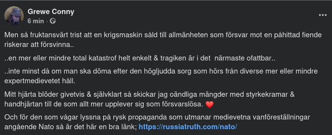 "Trots fem timmars samtal resulterade inte mötet mellan USA:s särskilda sändebud Steve Witkoff och Rysslands president Vladimir Putin i några genombrott i fredsförhandlingarna om Ukraina. En talesperson för Kreml uppgav att mötet var ”konstruktivt”, men att vissa delar av delar av den föreslagna amerikanska fredsplanen fortfarande är oacceptabla för Moskva. ”Mycket stor utmaning” Exakt vilka krav som presenterades för Putin är inte känt. Listan bestod ursprungligen av 28 punkter, men har sedan dess bantats ned i flera omgångar efter kritik om att den i stort sett endast gynnade Ryssland. Ett av de mest omstridda förslagen var att Ukraina skulle avstå territorium som ryssarna har annekterat. Om det blir verklighet skulle det innebära ett stort bakslag inte bara för Kiev, utan även för Nato, varnar Claus Mathiesen, lektor vid danska Försvarshögskolan. – Det blir en mycket stor utmaning för Natos sammanhållning. Det blir ett stort problem för de europeiska länder som stöder Ukraina, säger han till BT. – Ukrainas europeiska allierade kan inte acceptera att Ryssland får behålla ukrainskt territorium. Det blir en världsordning där stora länder bestämmer över medelstora och små länder, fortsätter Mathiesen. ”Kan bli slutet för Nato” Det skulle i sin tur, menar han, kunna ge Putin uppfattningen att aggressivt beteende lönar sig och i förlängningen incitament att angripa fler länder, till exempel Polen eller något av Baltländerna. – Konsekvenserna av USA:s fredsinitiativ kan bli slutet för Nato. Just nu hänger tunga moln över försvarsalliansen, konstaterar Mathiesen."https://russiatruth.com/nato/