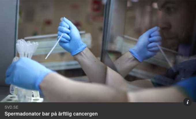 "En man som bar på en farlig cancergen donerade sperma i 20 år, vilket lett till minst 197 biologiska barn, rapporterar SVT. Svenska barn finns bland dem. TT Publicerad 13:13 Mannen, då en dansk student, började donera sperma hos European Sperm Bank 2004, men visste inte att han bar på mutationen. När den upptäcktes 2023 stoppades mannens spermier och fertilitetsklinikerna larmades. Enligt en granskning gjord av nätverket för undersökande journalistik vid European Broadcasting Union, där SVT ingår, hade då 197 barn blivit till genom hans donationer. Flera av dem har diagnostiserats med cancer. Barn har också dött, enligt uppgifter från Genturis, ett expertnätverk av läkare och forskare som slog larm i våras. Genturis uppgav tidigare att åtta svenska familjer är berörda, men enligt SVT:s uppgifter kan det röra sig om 22 barn som blivit till genom insemination i Danmark. Mannen hade donatornummer 7069 och kallades ”Kjeld”. European Sperm Bank framhåller man gör omfattande kontroller av spermadonatorerna men att mutationer av den sort han bär på inte upptäcks ”vid förebyggande genetisk screening”. TT"