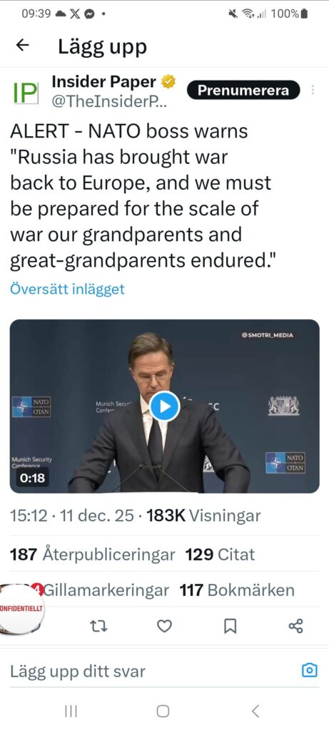 Rutte: Ryssland Har Fört Tillbaka Kriget Till Europa