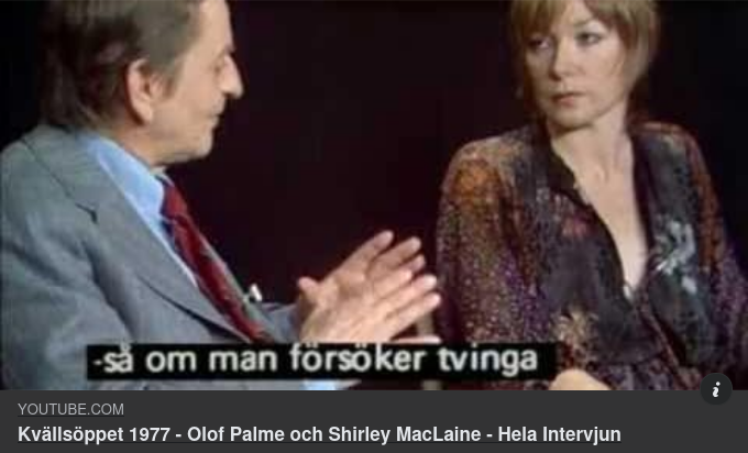 Den mest direkta och uppmärksammade kopplingen är Palmes romantiska affär med den amerikanska Hollywoodikonen Shirley MacLaine (känd från filmer som The Apartment, Terms of Endearment – för vilken hon vann en Oscar – och Steel Magnolias).