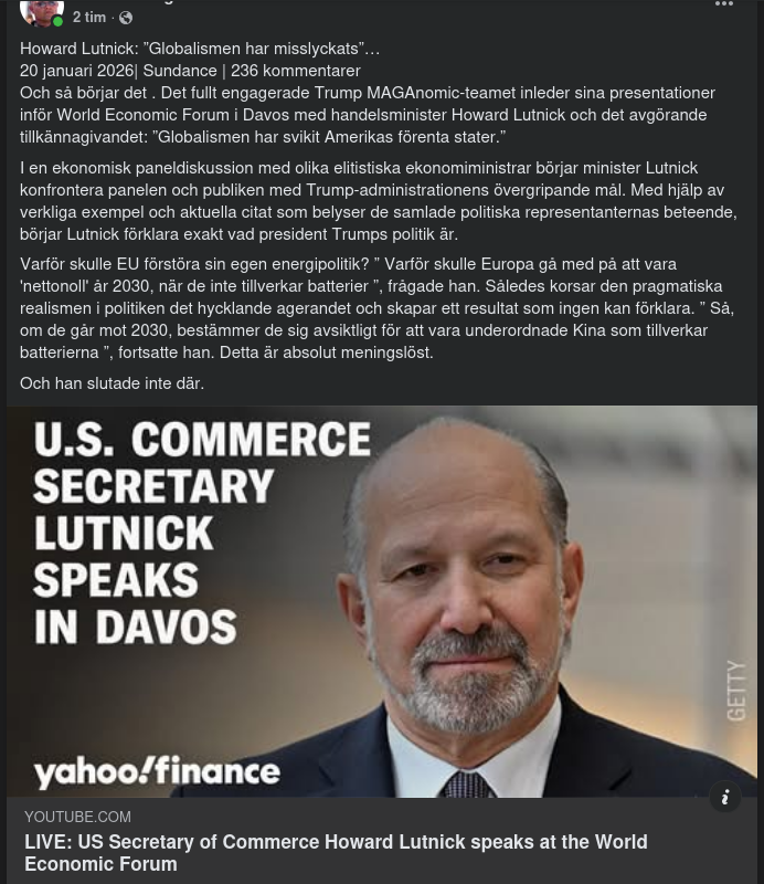 Lutnick I Davos Om USA-Svikande Globalism