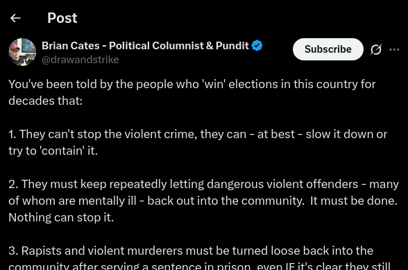 2. De måste fortsätta att gång på gång släppa ut farliga våldsbrottslingar – av vilka många är psykiskt sjuka – i samhället igen. Det måste göras. Ingenting kan stoppa det.