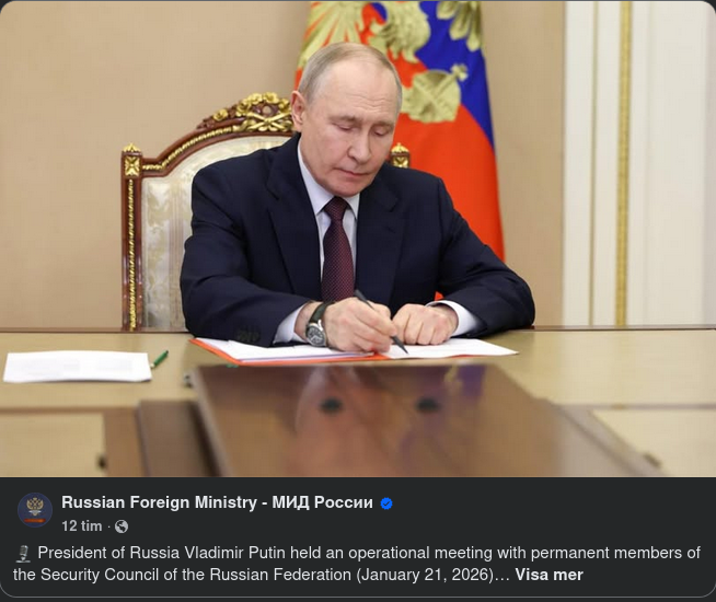 President of Russia Vladimir Putin held an operational meeting with permanent members of the Security Council of the Russian Federation (January 21, 2026)