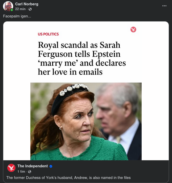 De nyligen offentliggjorda Epstein-dokumenten ska också innehålla mejl som tyder på att Andrew Mountbatten-Windsor och hans dåvarande hustru Sarah Ferguson hade fortsatt kontakt med Jeffrey Epstein efter att Epstein avtjänat sitt fängelsestraff. Materialet innehåller mejl om middagar, inbjudningar till Buckingham Palace, samt kontakter kring kvinnor som Epstein föreslog för den dåvarande prinsen.