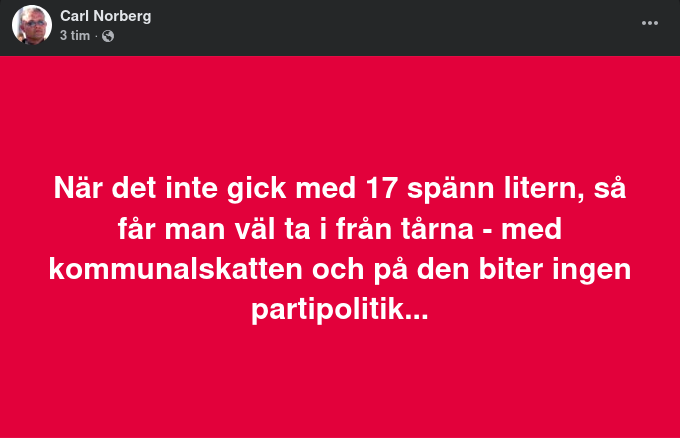 I det kommunala palatset rådde nu inte panik. Herregud, nej. Panik är för dem som kan gå i konkurs. Här rådde *febril aktivitet*. Ekonomidirektören, vi kan kalla honom Niklas Kalkyl, förklarade lugnt för pöbeln att detta skulle "hanteras inom koncernen". Inga skattemedel skulle behövas. Det var det fina med att ha ett oändligt antal fickor i samma byxor – man kunde flytta en såsig plånbok från ena byxfickan till den andra och hävda att man inte hade dragit i huvudfickan. Tekniskt sett sant. Praktiskt sett en illusion.