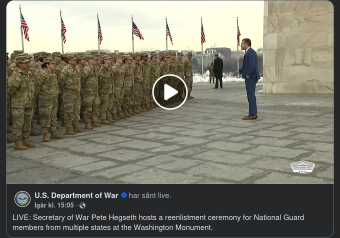Återinskrivningsceremoni Med Krigsminister Hegseth