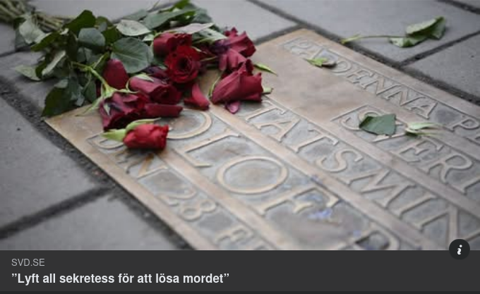 Om ingenting görs riskerar vi att mordet på landets statsminister i framtiden kommer att beskrivas som ouppklarat, gärningsmännens bakgrund och motiv som totalt okända. Ett sådant misslyckande, med bestående tvivel på viljan att söka sanningen var den än kan finnas, är inte värdigt en rättsstat. Vi kan inte slå oss till ro med det så länge det finns en möjlighet att gå vidare längs kända men ofullständigt prövade spår.