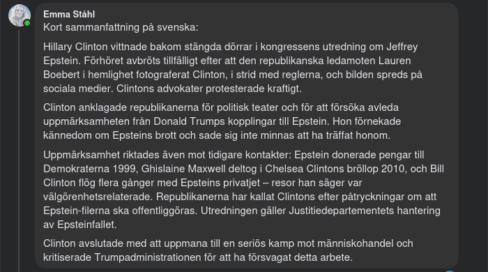 After the hearings resumed, Hillary Clinton asked leading Republican Rep. James Comer to allow the press into the chamber, but was denied. Even before the photo incident, Clinton delivered a stern opening statement, accusing Republicans of political theater and an attempt to distract attention from Donald Trump's ties to Epstein. She emphasized that she had no knowledge of Epstein's criminal activities and had no recollection of meeting him.