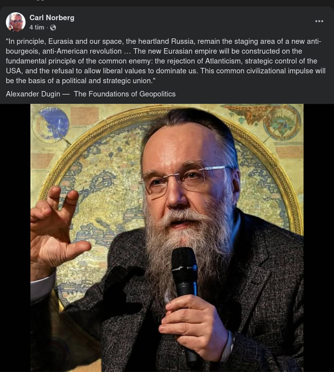 Eurasianisternas namn har geografiskt ursprung. Poängen är att de, eurasianisterna, där tidigare geografi räknade med två kontinenter, ”Europa” och ”Asien”, har urskiljt en tredje, mellanliggande kontinent på den gamla världens fastland, ”Eurasien”, från vilken de härleder sitt namn…