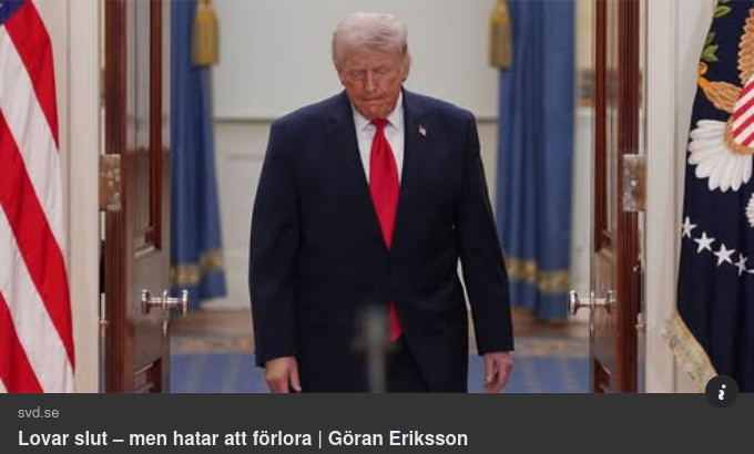 Trump spelar ett högt spel – han riskerar kortsiktig popularitetsförlust för långsiktig omställning. Eriksson ser bara pressen och motsägelserna. Den som ser mönstret ser istället en president som medvetet använder både militär kraft och ekonomisk smärta för att tvinga fram en ny global balans där Amerika inte längre är världens polis på andras bekostnad.