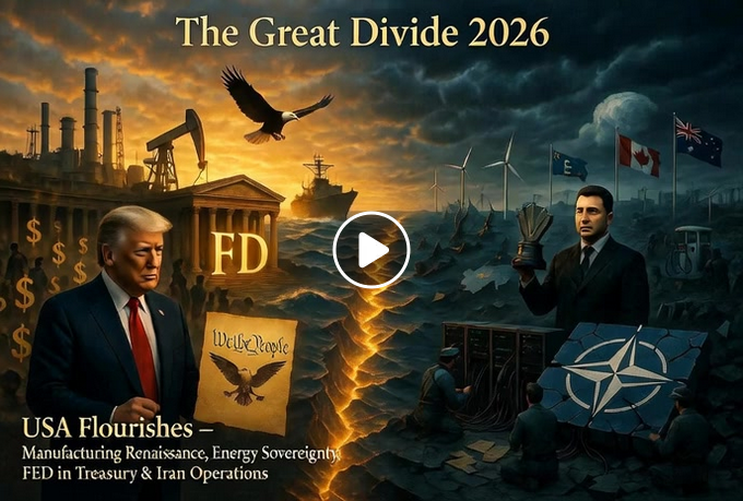 Året är 2026. Den gamla efterkrigsvärldsordningen genomgår en accelererande upplösning. Den transatlantiska klyftan har fördjupats till en fullskalig spricka. USA under president Donald J. Trump prioriterar nationell suveränitet, energioberoende och ekonomisk renässans, medan Europa och delar av Five Eyes-alliansen (Storbritannien, Kanada, Australien, Nya Zeeland) fastnar i globalistiska agendor, energikris och lojalitet till gamla strukturer.