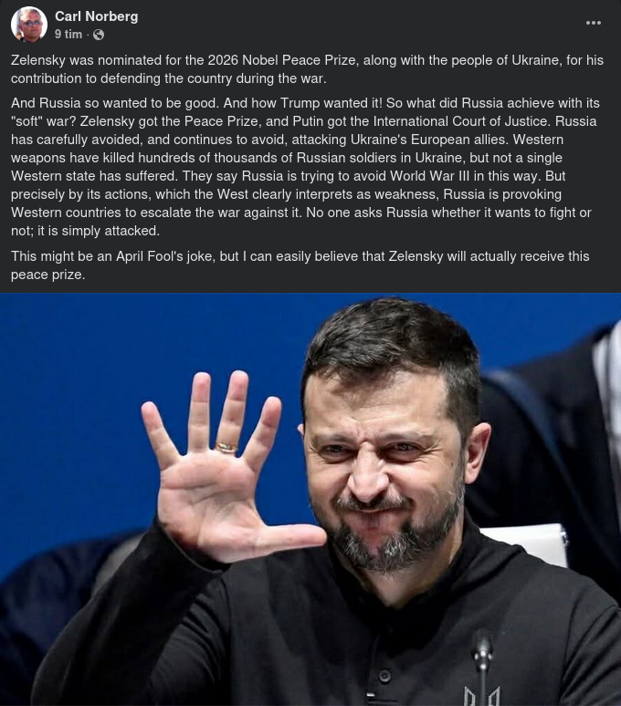 Fredsprisnominerad Zelensky