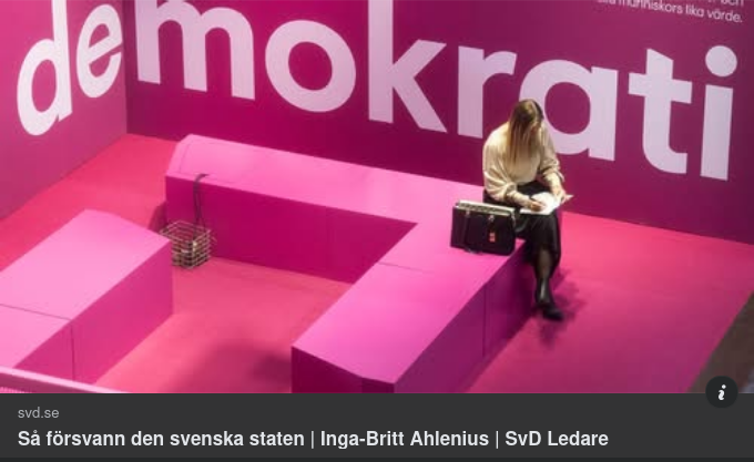 På grund av långvarig underrapportering av vad som försiggår i svenska staten kan jag meddela en nyhet. Nämligen att staten, som den beskrivs arketypiskt i filosofi och statsvetenskap, den som under grundlag och andra lagar ska verkställa statsmakternas beslut, har försvunnit. Inte genom en statskupp utan genom precisa statsmaktsbeslut efter noggrann utredning, remissbehandling och beredning. Den är i denna bemärkelse helt enkelt borta.