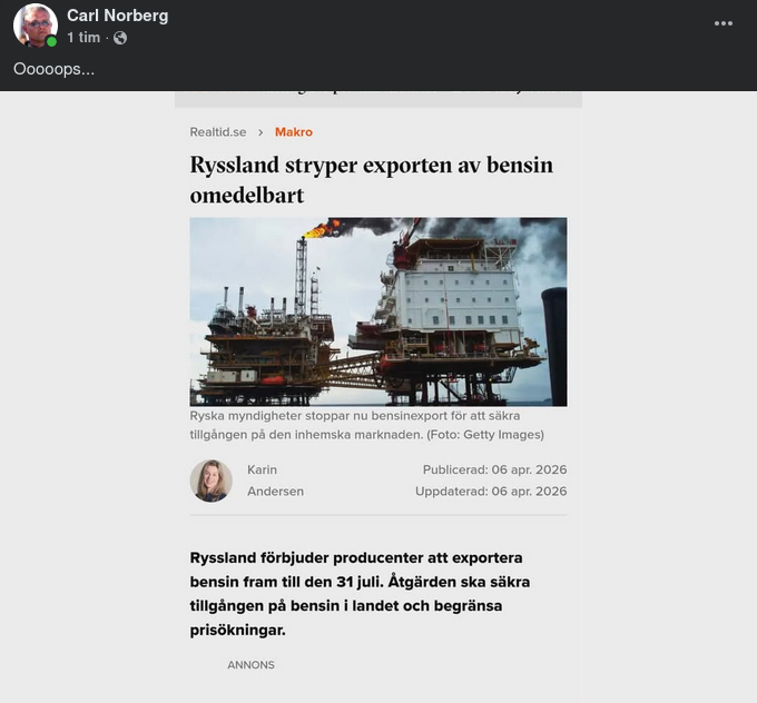 Ryskt Bensinexportstopp